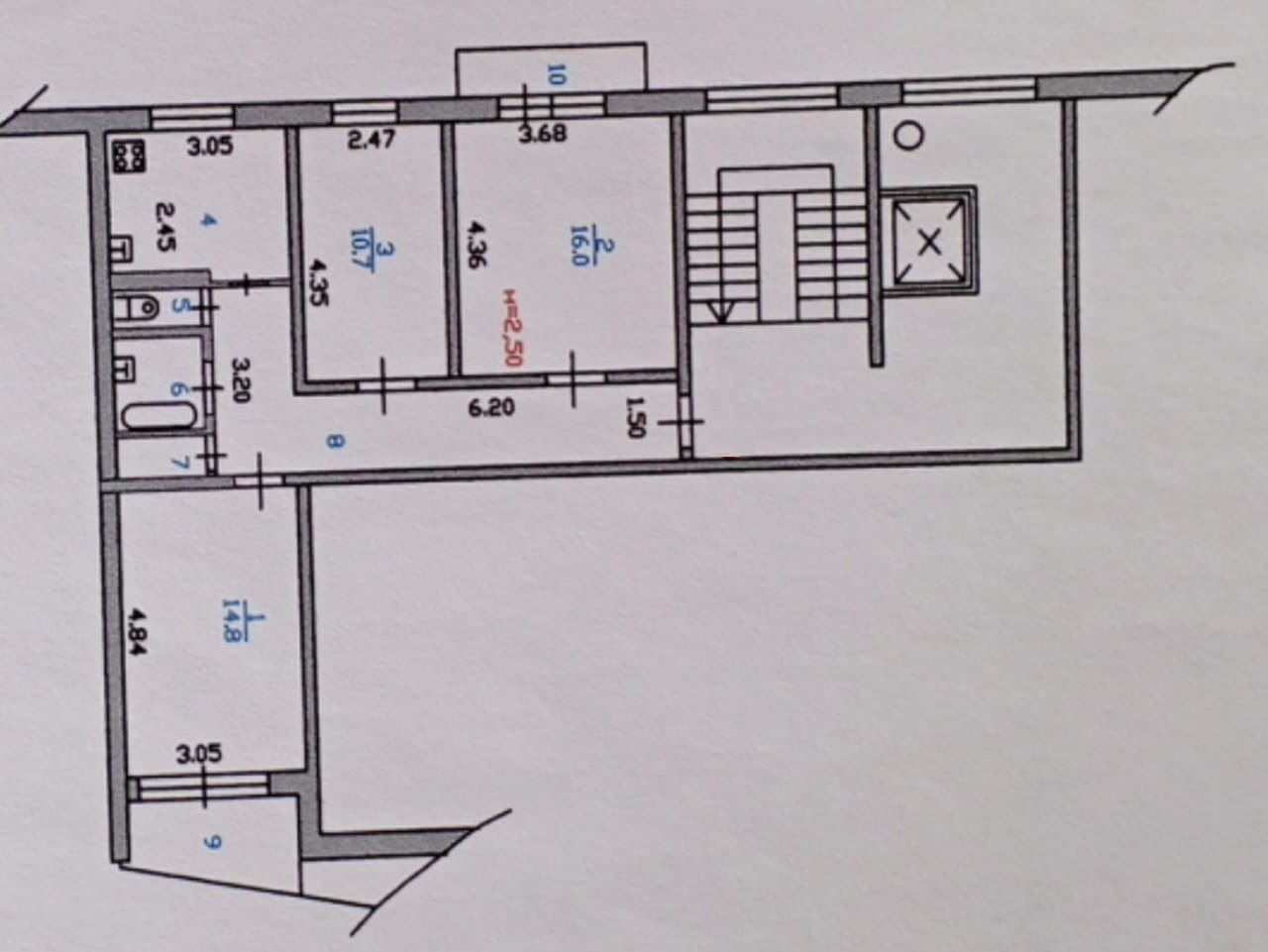 Общая площадь – 68 кв.м., жилая – 41,5 (16+15+10,5) кв.м., все комнаты изолированные, кухня – 7,7 кв.м., Высота потолка - 2,5м., Окна на две стороны. Кладовая – 1,2 кв.м. Изюминка квартиры: наличие балкона и лоджии.